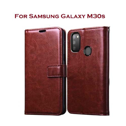 Vintage Flip Cover Case for Samsung Galaxy M30S – Brown Leather Foldable Stand | Wallet Card Slots
